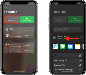FaceTime 링크에 식별 가능한 이름을 지정 합니다. - 작업 메뉴에서 링크를 공유하는 방법 (예 : 메시지 또는 메일)을 선택합니다.